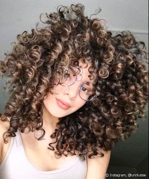 2. Cacheado enrolado: os cachos são mais apertados, com formato em “S” mais estreitos;