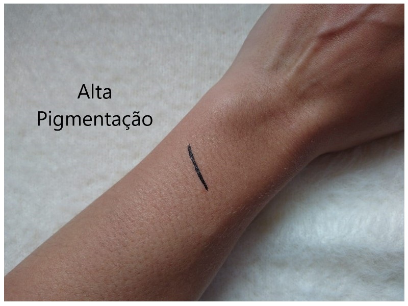 Durante a aplicação logo percebemos que o produto é extremamente pigmentado, não é necessário aplicar uma segunda camada nos olhos, e que ele seca rapidamente.